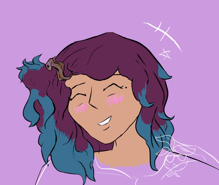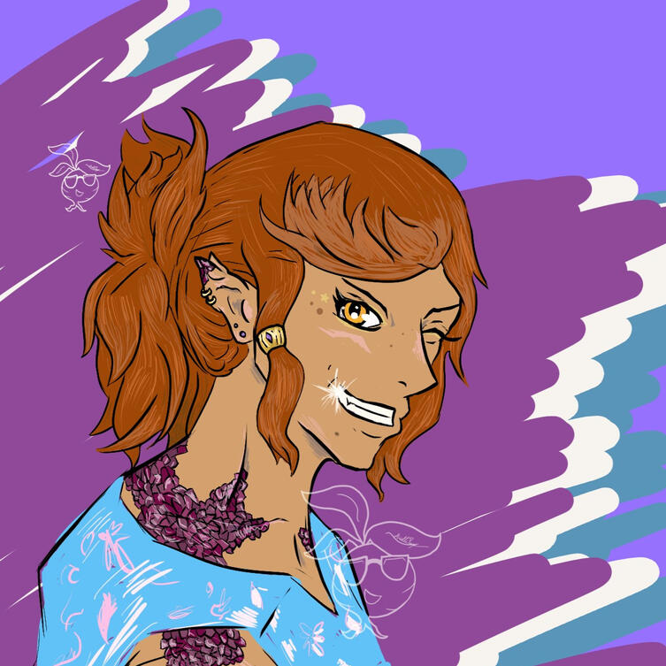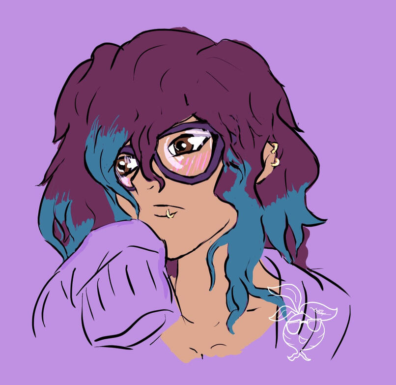Wavy brownish-plum colored hair and dark umber eyes, Lumella is on the shorter side. Their sienna skin is partially decorated in freckles, one just lateral to their left eye, a few on their arms, but most are found sporadically on their legs and thighs. As a teenager, they would normally dye most of their hair in hues of purples and reds. More recently, in memory of their late brother, they’ve been dying their hair with teal. They often thread a braid with simple jewelry, or tie a side ponytail when they have the energy to style their hair. Lumella tends to dress casually. Often dressing in layers, with a casual style that blends the vibes of an alt-punk rock artist and a spoken word writer, including pieces like: boots, hoods, black with slight accents of color, patterns like stars and plaid, tights, etc…Their umber eyes aren’t as effective as they would like, forcing them to often rely on glasses, contacts, or temporary vision spell enhancements to see. They have a couple tattoos. One acts like a constellation along the freckles on their thigh, representing an ancient symbol for music. On their right forearm, is a small stylized sky-scape in a bubble, showing sunset. This one was in memory of her late brother Sky.Intelligent, perceptive, and creative, Lumella grew up studying sciences and experimenting with music. This eventually led to joining the royal guard medic team of Asteria, also encouraged by Sky and Mae to pursue this.Her childhood was heavily plagued with blinding spots and thick mist, her earliest memories not being until she was around 8 years old. During this time, she was taken into an orphanage in the outer territories of Asteria. This is where she meets Skylar.Lumella and Sky stuck together ever since, promising to keep one another safe. Over the years they moved between a few orphanages, keeping their promises to one another the entire time, as they grew into a family.Unfortunately, the orphanages had a bad habit of being neglectful and at times dangerous. The two felt trapped, but found strength and love in one another. Skylar turning 18 was their ticket to escape, and the two have lived together ever since, supporting one another as well as they could. Sky was fortunate to happen upon and earn a position in the royal guard, guarantee-ing them a home, free medical care and education, etc. Lumella’s life began to feel like, well, a life. Everything wasn’t about survival. She and Sky could pursue interests, learn and experience new things, make a space of their own, and have a place to call home and feel safe.Despite having a home and brother to cherish, Lumella struggled to make new lasting relationships, platonic or otherwise. They struggled to speak to others, or to feel calm or safe enough to truly relax. They rarely trusted others, and often found their inner turmoil warping reality. This would lead to fights or Lumella shutting down. Over time they crafted nearly impenetrable icy walls to protect themself from growing close to anyone new and the possibility of being hurt. On rare occasions someone brave would try to pry open that armor, only to cut them both in the process. Thus, their socializing consisted primarily of Sky and his friends, playing games, or etc. As she reached her late teens, Lumella established her first steady and close relationships with people other than Sky, Zarae and Maevis.Preferring to spend the majority of their time alone, Lumella learned to channel their past traumas and the branching dark thoughts into art. Especially music. Lumella creates music casually, but they have only ever agreed to perform in front of an audience a couple times. Mostly they prefer to create and then share the audio file through social media or to a friend personally.Surviving trauma also inspired Lumella’s main purpose: to help inspire happiness in those she holds dearly, and to help protect the animals and people of this world, Ielora. This was also greatly encouraged by their patient, empathetic, and thoughtful nature.Then, in their early twenties, Lumella lost Sky, who had been missing in action during the most recent war with Yuneira-Su. Losing Sky not only weighed on her with an aching loneliness; it also warped her view of herself and her effect on the world around her. This is where we first meet Lumella in Vol I. Lost and drowning in despair.