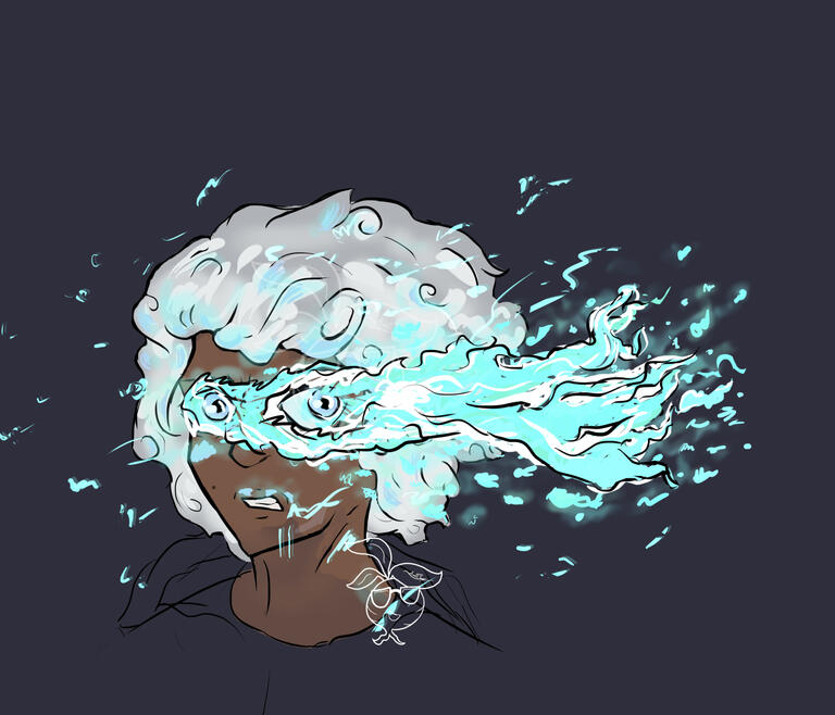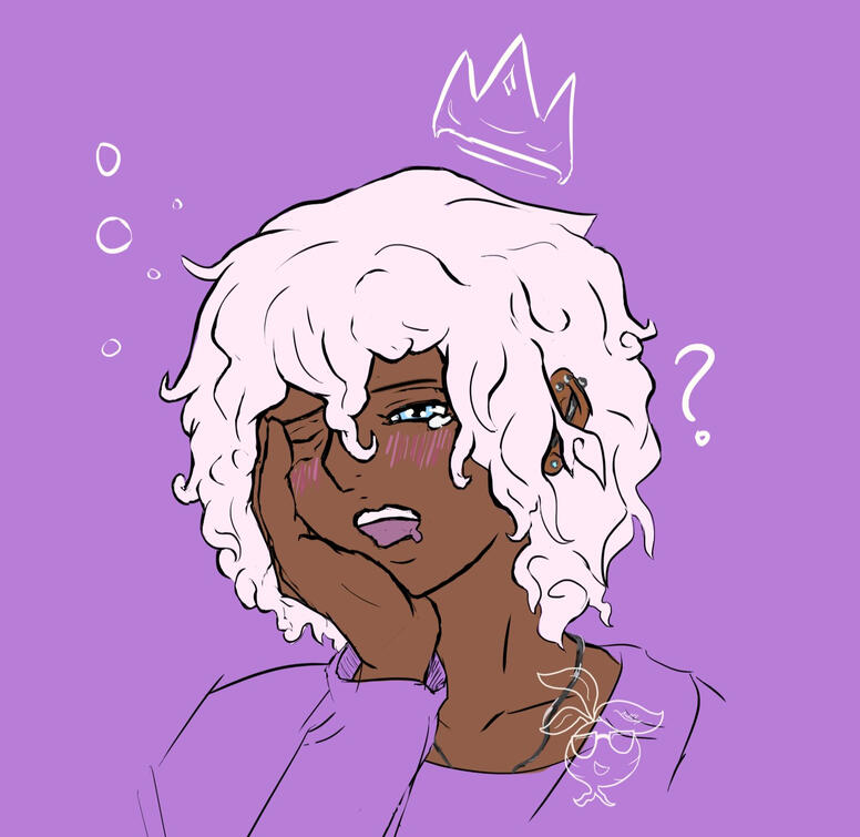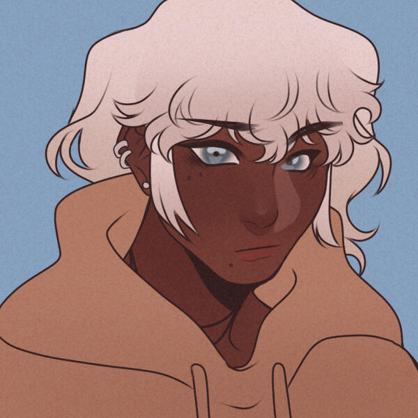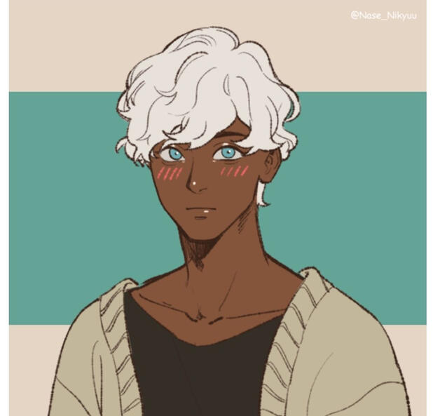 Maevis mostly takes after his mother’s appearance, with pale blue eyes, curly/ wavy snow-colored hair just above his shoulders, and umber skin. Shorter than most, he also has one tattoo on his lower abdomen, just above his hip. It’s small, and in the shape of a rare flower that has adapted to survive extreme environments. He obtained this through a rebellious urge at age twenty, hoping the permanent art would help remind him of who he is outside of being the prince of Asteria. His style tends to be pretty casual and comfortable, most likely inspired by the pressuring requirement to dress his best for many royal/ political events. This casual style consists of hoodies, sweaters, and shirts; sweatpants, leggings, stretchy pants. He doesn’t normally wear jewelry, but he does have a necklace that he always wears, gifted to him by Lumella when they were a few years younger. On a dark thread, the centerpiece is a simple silver colored butterfly, and a miniscule orb, holding a rolled up petal of the flower he has tattooed on his abdomen.